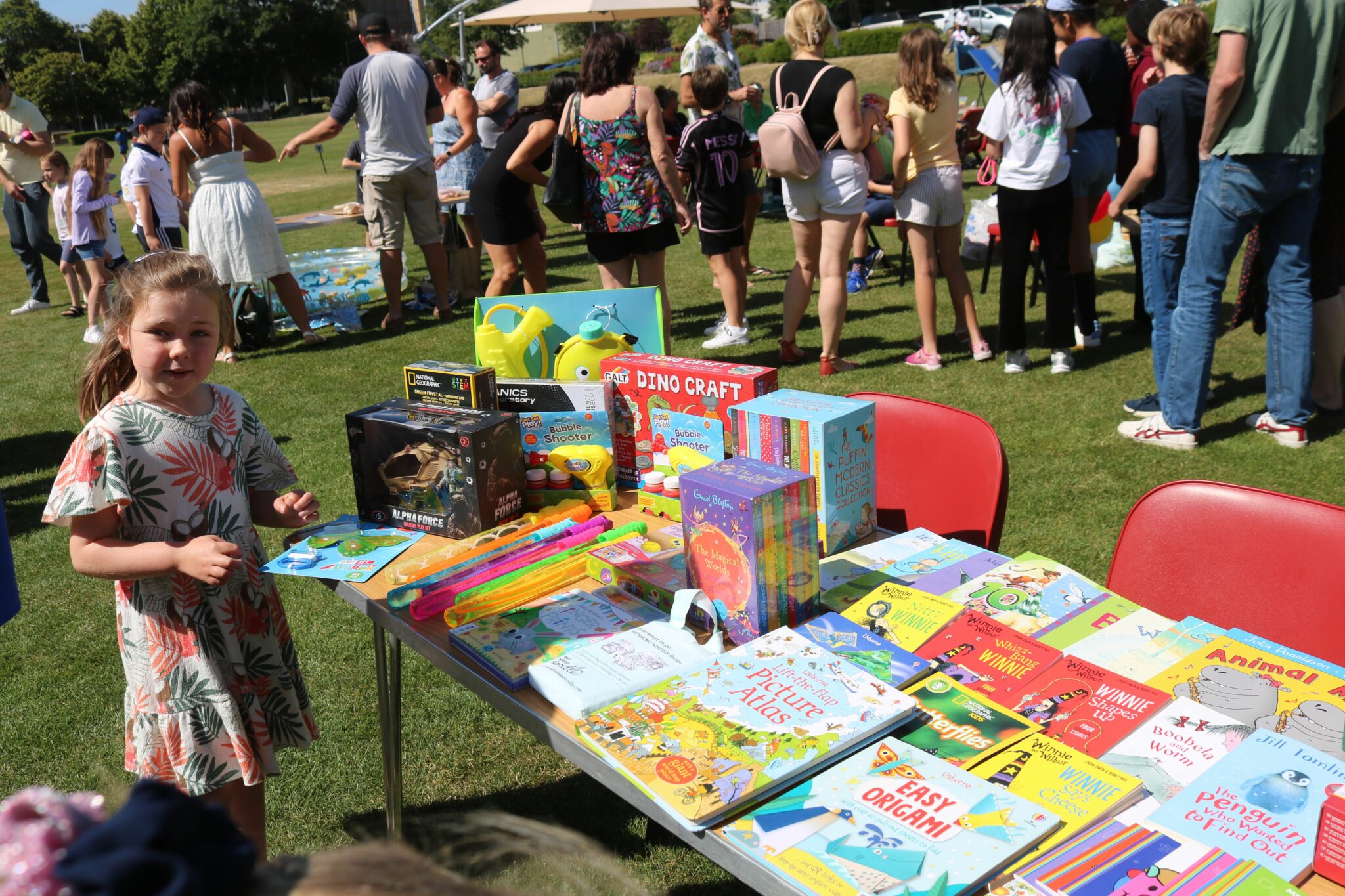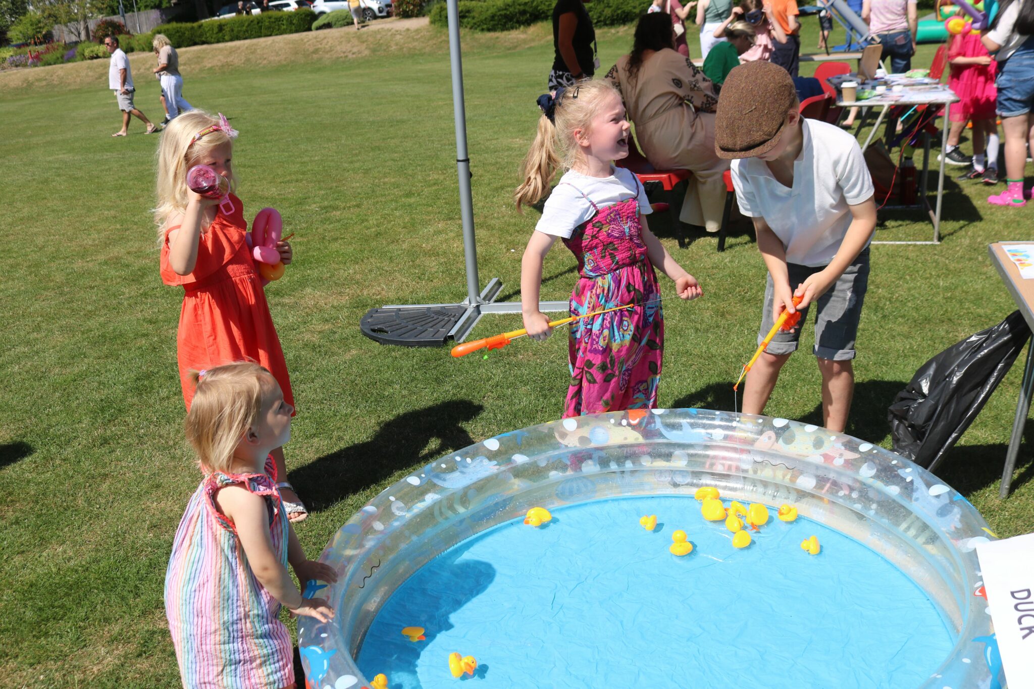 Attendees enjoyed classic games such as hook a duck, splat the rat, and a dunk tank, as well as browsing stalls selling stuffed animals and books from the Happy Bookshop. The little ones were thrilled with toddler inflatables and an inflatable obstacle course, while others explored the gardening stall and took part in the tombola. Face painting and balloons were also hugely popular!